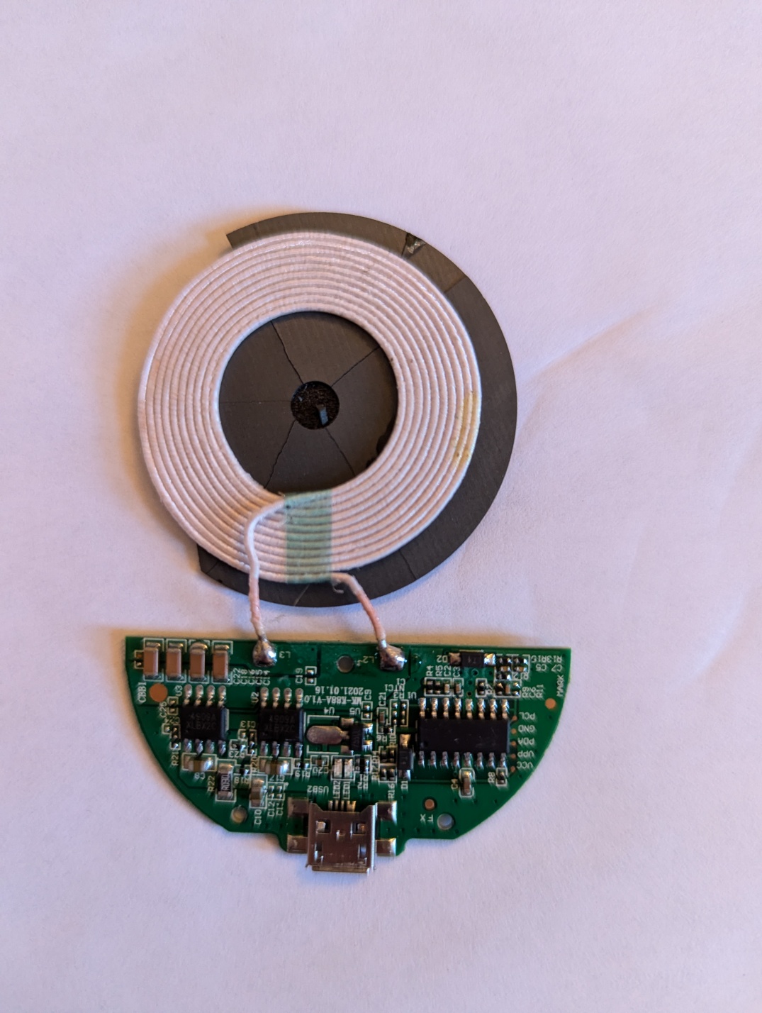 그 충전되는 부분과 기판사진인데 원리는 정말 간단한 거 같습니다. 만약 충전되는 부분을 더 넓게 한다면 가구나 책상에도 설치가능할 것 같습니다.