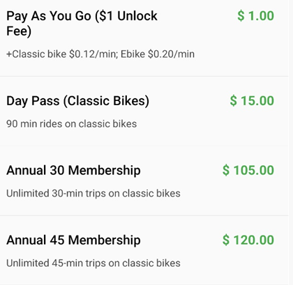 Annual 30 Membership: 연간 플랜이며 자전거를 30분마다 반납하고 쓰면 됩니다. (보증금 없음)