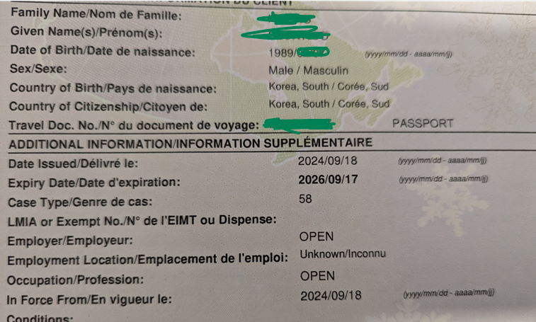 컬리지 졸업을 하고 PGWP를 받았는데 3년 비자를 다써서 1년을 연장한 상태였습니다. 24년 10월 만료 예정일이었고 다행히 워홀 나이 제한을 30세에서 35세로 바꿔서 온라인에서는 인비를 받은 상태였습니다.