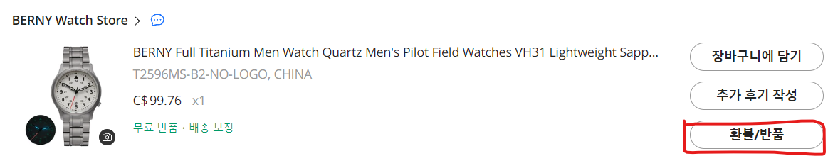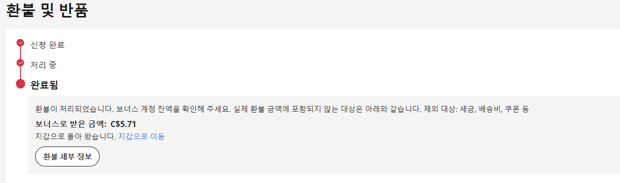 그런다음 구매했던 목록에서 ' 주문 상세 ' 로 간다음 아래로 쭉 내린 다음다음과 같은 창에서 ' 환불/ 반품 ' 을 눌러주세요