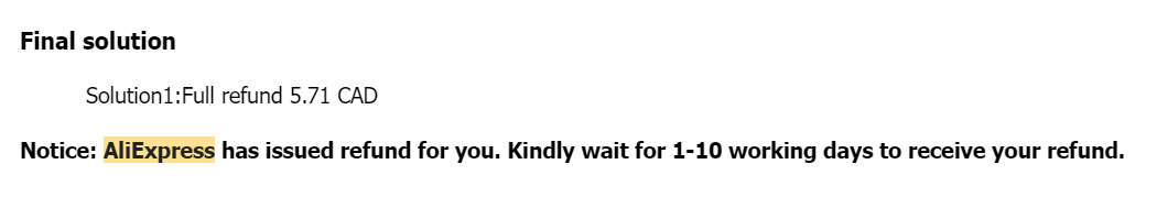 안내: 알리익스프레스는 당신을 위해 환불을 진행했습니다. 1-10일 (공휴일 제외)를 기다리시면 환불을 받으실 수 있습니다.