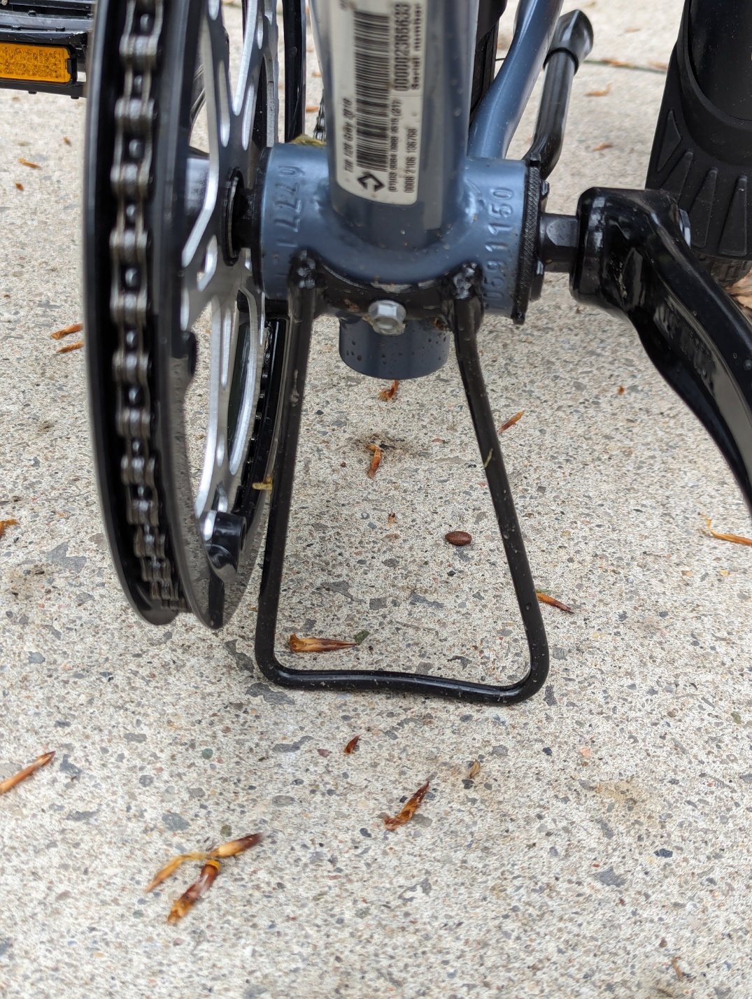 4. 완벽하게 접으려면 핸들도 내리고, 안장도 내리면 꽤 작은 사이즈가 되지만 데일리용일 때는 이렇게 반만접어도 유용합니다. 세워놓을 때는 첫 번째 사진처럼 받침대를 활용하면 됩니다. (페달을 좀 조정해야 함)