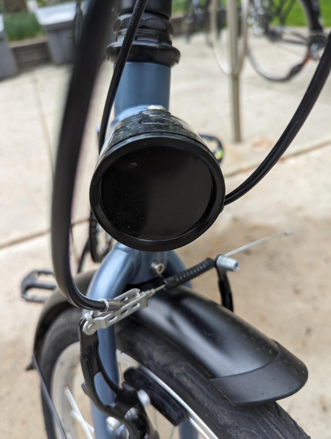 전 후방에 라이트가 같이 있어서 야간에도 유용하지만 스위치가 수동이라서 미리 키고 라이딩을 해야 합니다. (특히 뒷부분) 그리고 건전지가 AA 나 AAA가 아니고 넓적한 건전지가 들어갑니다.