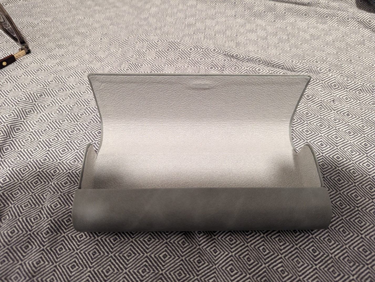 실측은 가로 157mm 세로 60mm 두께 30mm 입니다. 저는 스웨이드 재질로 알고 구매를 했는데 금속에 시트지를 발라놓은 느낌이고 케이스 열리는 부분에 자석이 있어서 닫치는 구조입니다. 그러나 자석이 작아서 맛있게 닫치지 않는 게 최대 단점입니다. 그렇긴 해도 스스로 열리거나 하지는 않습니다. 가격은 4천 원