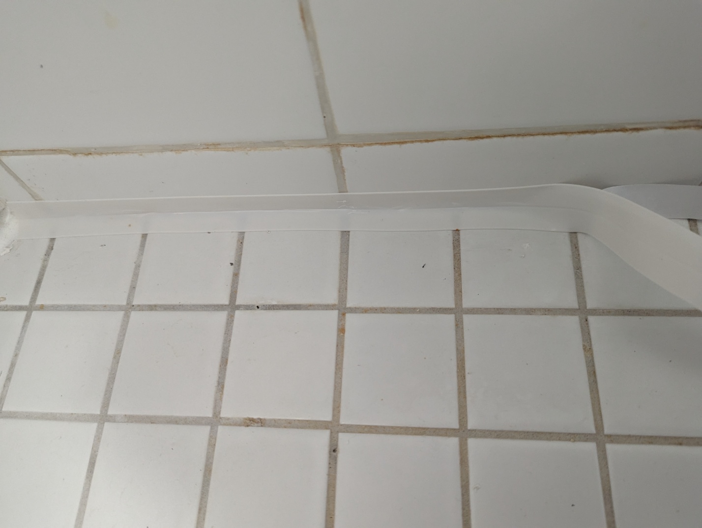 아래 사진처럼 코너에서 상세페이지 설명대로 아래부분을 잘라서 겹쳐 붙였는데 윗부분이 곡면으로 휘어 코너 부분과 100% 밀착이 안 됐습니다. 그래서 샤워할 때 무조건 물이 들어갈 것이라고 생각했습니다.